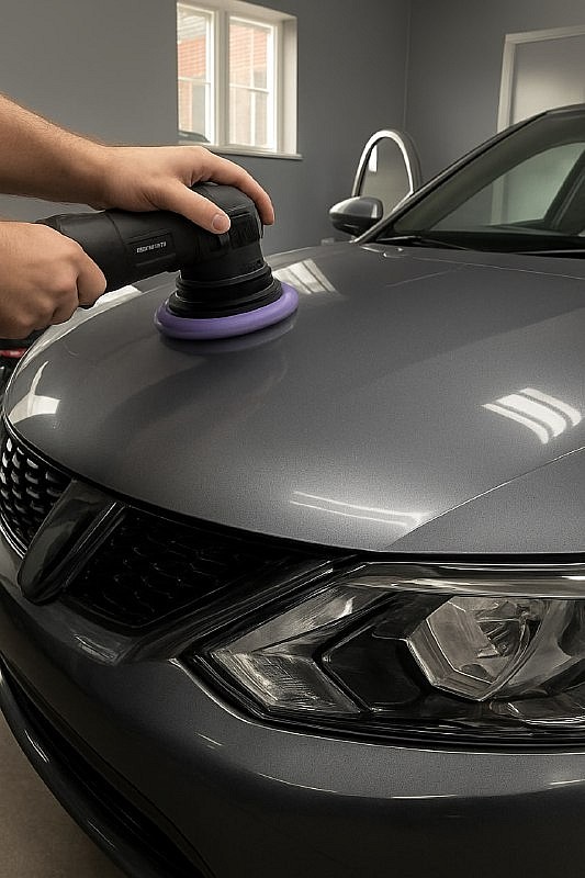 Со временем лакокрасочное покрытие теряет свою яркость, и цвет становится тусклым. Полировка помогает восстановить первоначальный блеск, придавая кузову автомобильный «сияющий» вид. Это особенно важно, если автомобиль стареет или эксплуатируется в условиях, где он подвергается воздействию агрессивных погодных условий, таких как солнечные лучи, дожди или снежные бури. - Защита от внешних факторов