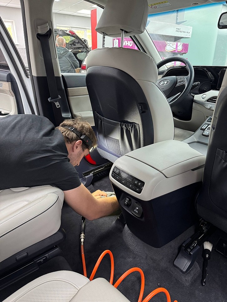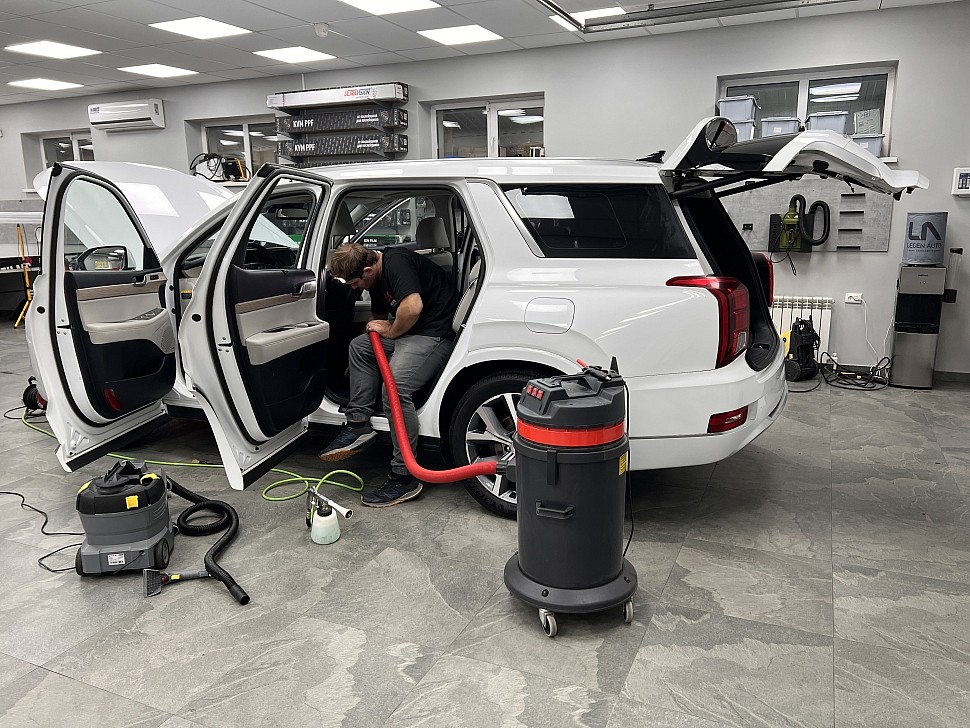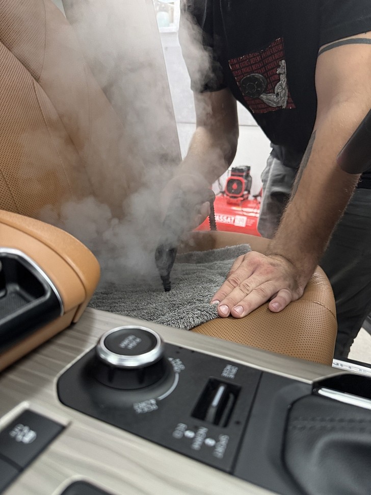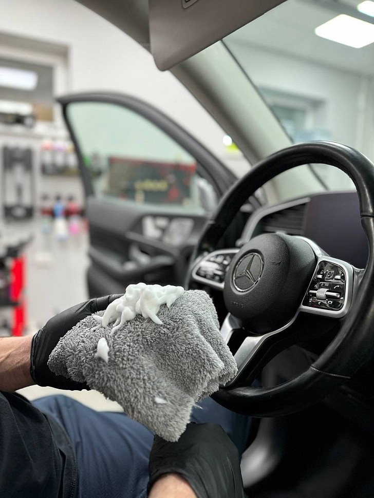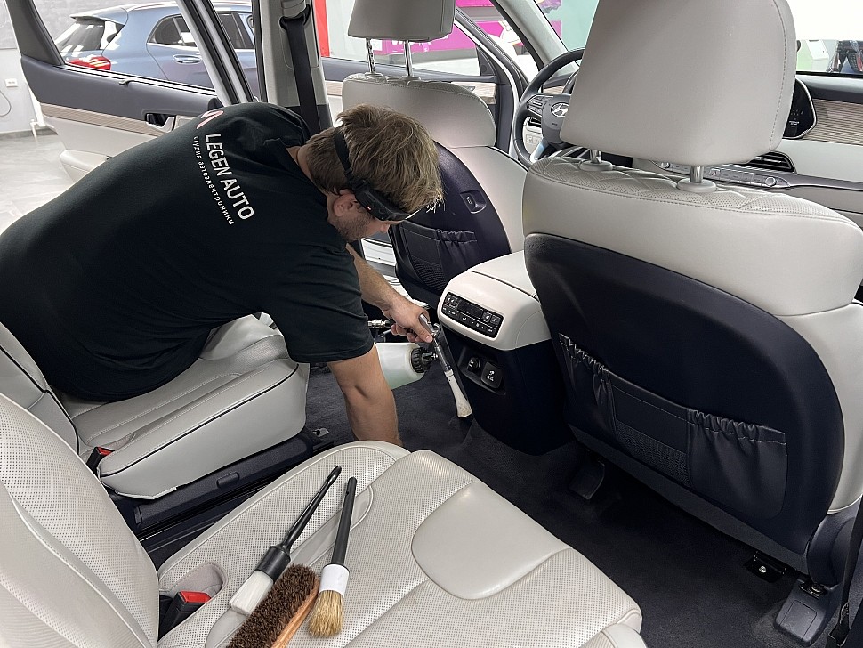 Нельзя: влажная чистка текстиля, кожи, потолка — высок риск испортить материалы без профессионального оборудования