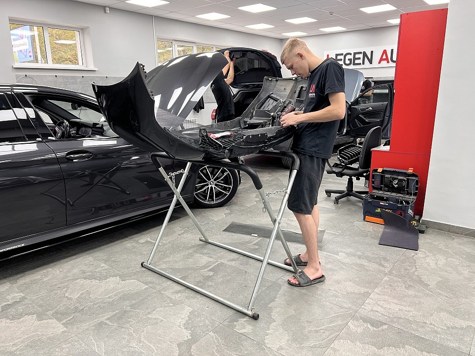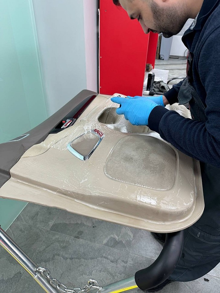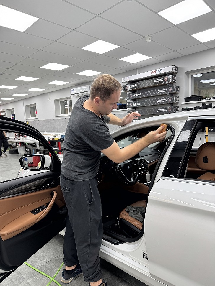 Мы стараемся не разбирать кузов при нанесении антигравийных пленок. Но некоторые элементы невозможно оклеить, если деталь не снять: например, бампера, ручки дверей и еще часть накладных элементов мы всегда снимаем при оклейке глянцевыми или матовыми антигравийными полиуретановыми пленками.