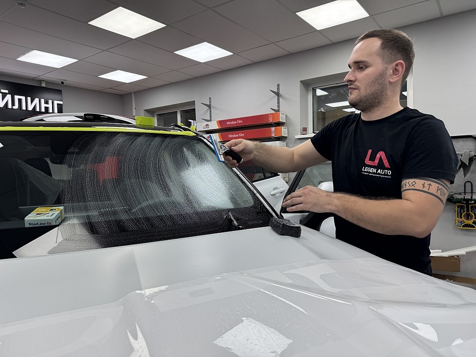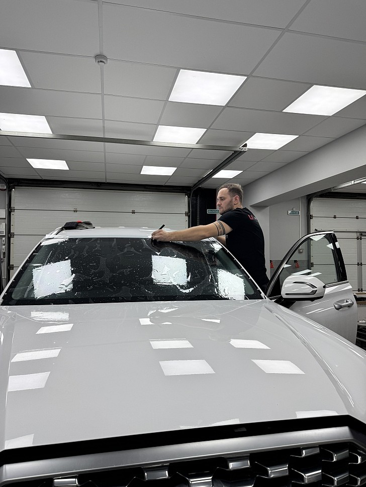 При бронировании используется мягкий специализированный инструмент и профессиональные составы. Рабочая зона защищается, чтобы исключить контакт растворов и инструментов с элементами салона и кузова. Стекло не режется и не обрабатывается абразивными средствами, поэтому риск повреждений сводится к минимуму.