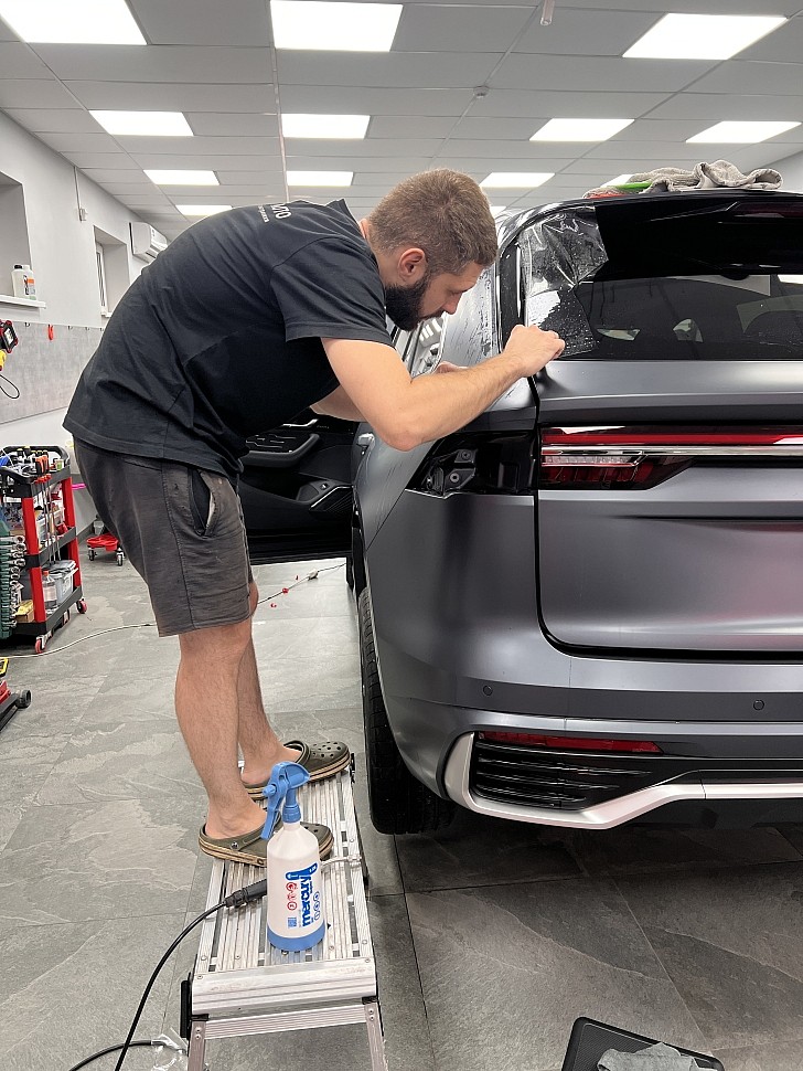 Да, вы можете присутсвовать, но в зависимости от времени оказания услуги и самой услуги. При нанесении защитной и виниловой пленки очень важно как можно меньше ходить вокруг автомобиля - каждая пылинка с вашей одежды статическим напряжение притягиватся к кузову и может оказаться под пленкой.