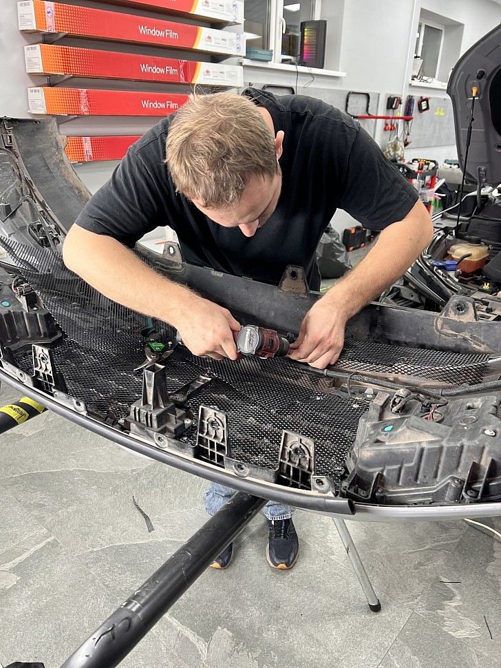 Процесс установки зависит от модели автомобиля. Чаще всего мы аккуратно снимаем декоративную решетку радиатора, не снимая весь бампер. На некоторых моделях возможна установка вообще без демонтажа. Наш мастер заранее определяет оптимальный способ для вашего авто.